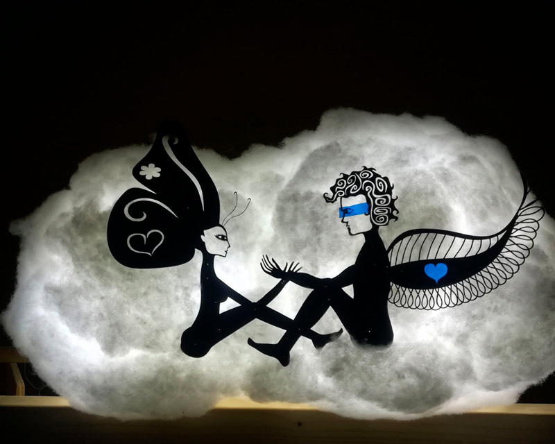Lapicera y Tijereta fabrican marionetas de sombras en su taller donde hay un teatrillo de madera por el que entran y salen para dar vida a la luz. Un día son sorprendidas por la llamada de la diosa griega Eurínome y así empiezan una serie de historias de fantasía, aventura y amor sobre la mitología griega: la deslumbrante creación del Universo, Penélope tejiendo día y noche a la espera de su amado, Pegaso cabalgando los cielos en busca de libertad, la soledad del Minotauro encerrado en el laberinto, y las flechas traviesas del dios Eros.