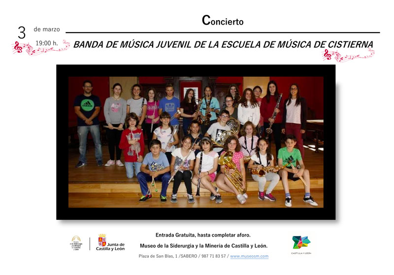 El Museo de la Siderurgia y la Minería de Castilla y León ha programado un concierto de la banda de música juvenil de la Escuela de Música de Cistierna este próximo sábado, 3 de marzo.