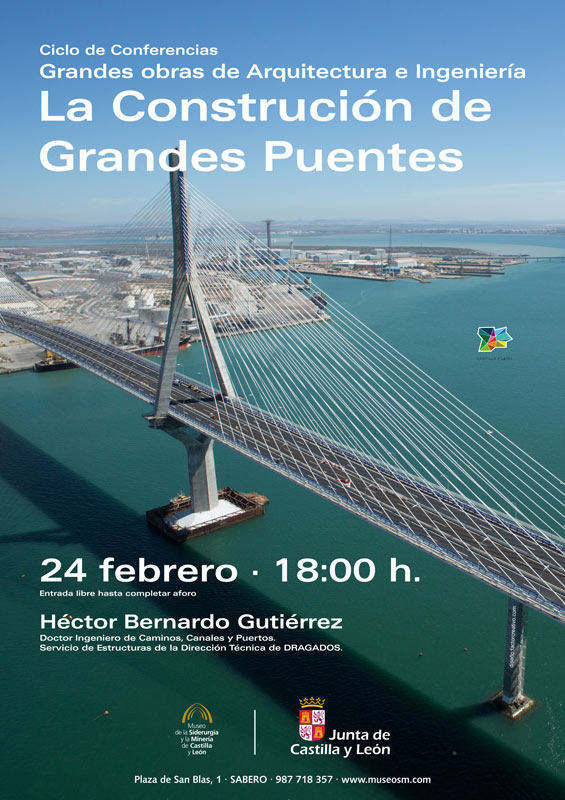 El Museo de la Siderurgia y la Minería de Castilla y León, con sede en Sabero (León), ha programado dentro del ciclo de conferencias Grandes obras de Arquitectura e Ingeniería, la ponencia `La Construcción de Grandes Puentes´ a cargo de Héctor Bernardo Gutiérrez (Doctor Ingeniero de Caminos, Canales y Puertos. Servicio de Estructuras de la Dirección Técnica de DRAGADOS).