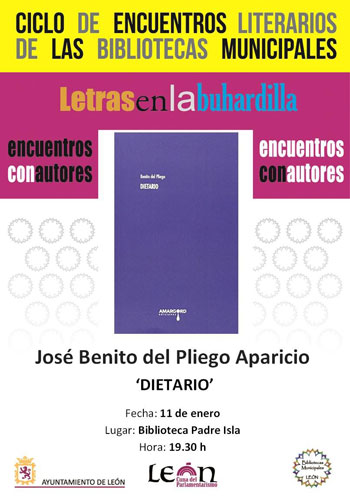 José Benito del Pliego presenta su ‘Dietario’ en el ciclo Letras en la buhardilla. Biblioteca municipal Padre Isla.