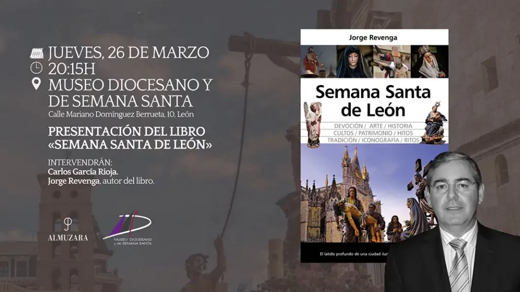 El Museo Diocesano y de Semana Santa acoge el próximo jueves 26 de marzo a las 20:15 horas la presentación del libro “Semana Santa de León” (Editorial Almuzara) de Jorge Revenga. El autor estará acompañado de Carlos García Rioja, pregonero de la Semana Santa 2026.