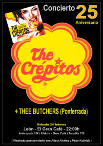 Home / Eventos / ‘The Crépitos’ celebran su 25 aniversario con un concierto en el Gran Café / Imprimir