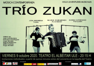 TRIO ZUKAN. Música contemporánea Ciclo Juventudes musicales.El Albéitar