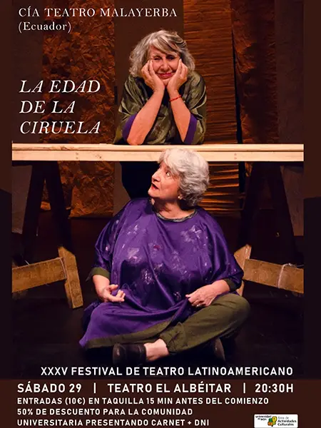 XXXV FESTIVAL DE TEATRO LATINOAMERICANO presenta «LA EDAD DE LA CIRUELA», de Aristides Vargas. Teatro El Albéitar